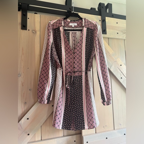 This INTERMIX romper features a striking black, pink and purple color palette, perfect for a casual night out. The long sleeves and v-neckline add a touch of elegance to its sheath style, creating a flattering silhouette.