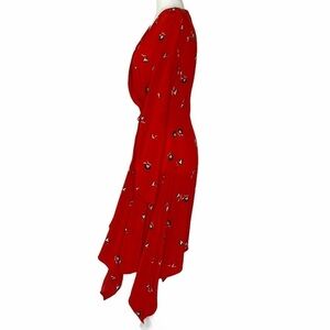 INTERMIX Red Silk Floral Josie Handkerchief Hem Dress 8