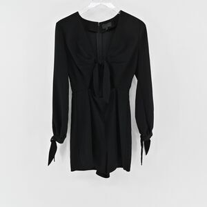 INTERMIX Romper Womens Size Medium Black Tie Front Cut Out Long Sleeve Goth Punk