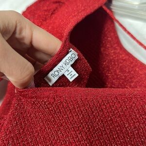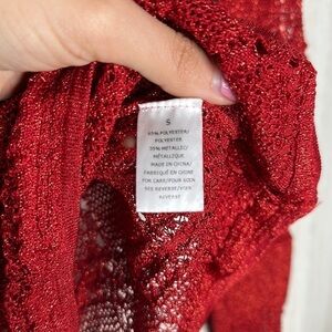 Intermix Ronny Kobo sparkly red puffed sleeve sweater. Perfect for Holdiays! beautiful lightweight Christmas sweater