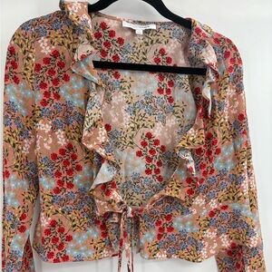 INTERMIX Silk printed Floral Ruffle Blouse Top Tie Front V-Neck Boho size 2