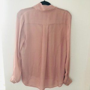 INTERMIX Womens BLUSH 100% SILK FRONT TIE LONG SLEEVE BUTTON UP TOP Size 6