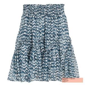 Keywords: INTERMIX, mini skirt, blue skirt, geometric pattern, smocked waistband, casual wear, size XL, silk blend, women's fashion, all seasons.