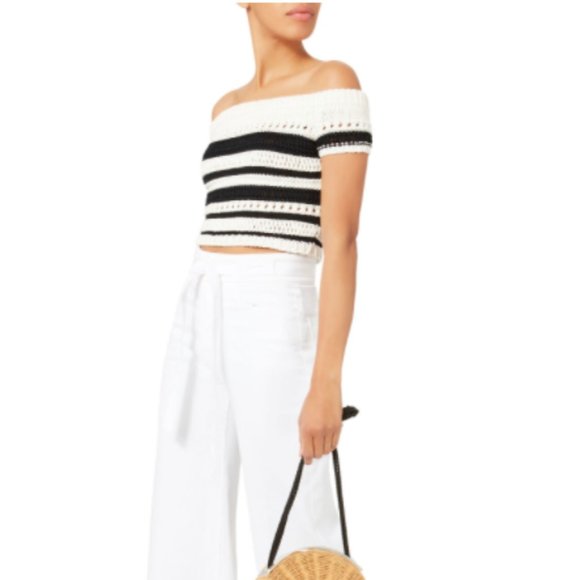 INTERMIX Yulani Off Shoulder Striped Crocheted Knit Crop