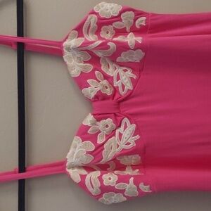 INTERNATIONAL CONCEPTS INC Pink Strappy Floral Embroidered Swimsuit Cover Dress