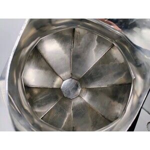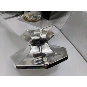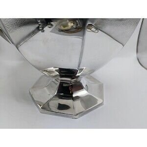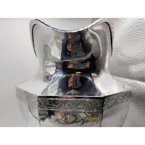 This elegant large pitcher is a product of the Wilcox Silver Plate Company, featuring the classic American pattern. The piece has a mid-century modern style and is made of silverplate, with an "F" monogram on the 1972 International Silver Co. label. The age of the pitcher is unknown, but it is a beautiful addition to any collection or display.