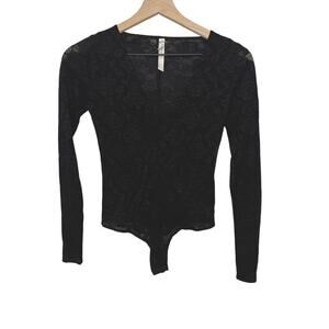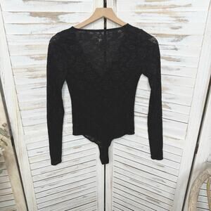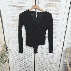 INTIMATELY FREE PEOPLE Women's Size XS Black V Neck Lace Bodysuit Top Vampy Goth