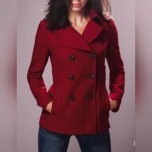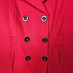 INTL DETAILS Womens RED Double Breasted Pea Coat MEDIUM Removable Hood