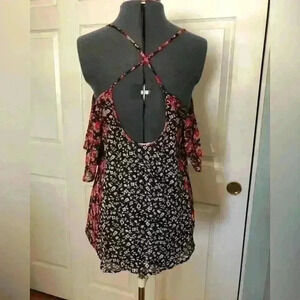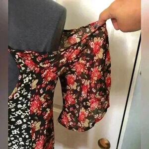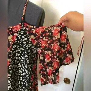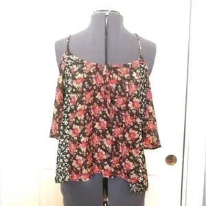 INTO SHEER BLACK RED FLOWER THIN STRAP BLOUSE TOP BEST FIT MEDIUM
