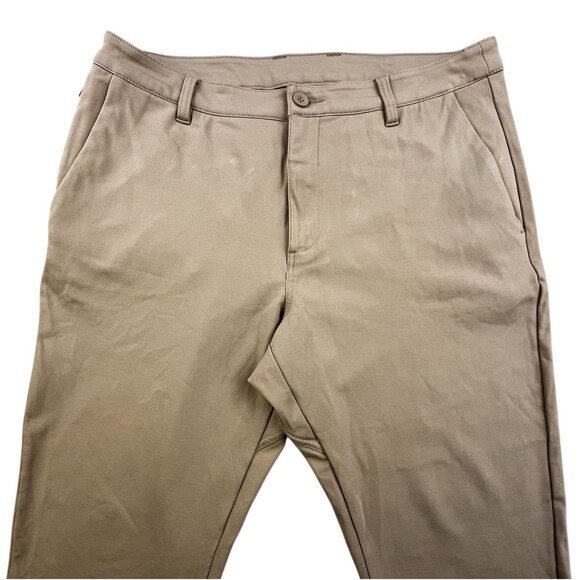 INTO THE AM Pants Mens 38x30 Tan Khaki Performance Tapered All Day Stretch