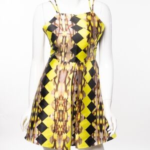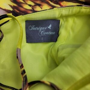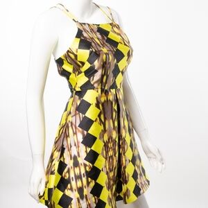 INTRIGUE COUTURE Back Out Geometric Halter Swing Dress, adjustable spaghetti straps, fully lined, hidden zipper in the back, 17" armpit to armpit, 29.5 length(not including adjustable straps), polyester shell, rayon lining, NWT, never worn/used