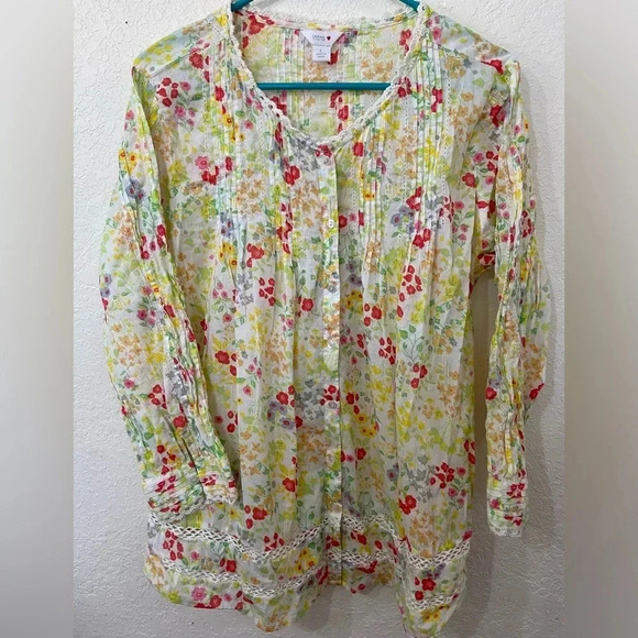 INTRO Floral Pintuck and lace inset blouse Sz Large