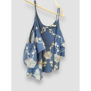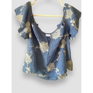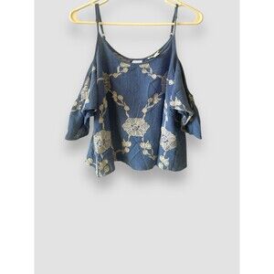 INTU Women Blue Floral Rayon Top With Strappy Back Cold Shoulder Size Large Boho