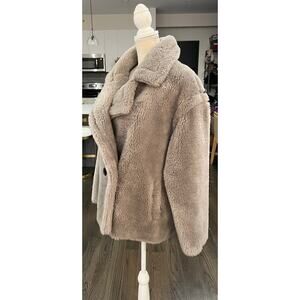 INTUITION Paris Beige 100% Wool Lamb Fur Shearling Oversized Jacket Coat M $810