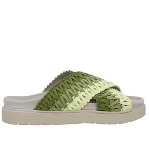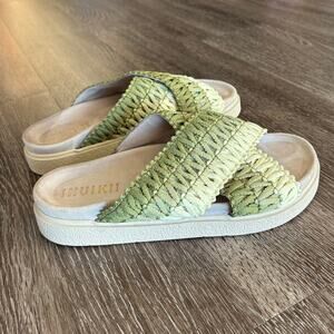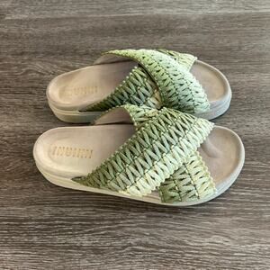 INUIKII Woven Slide Sandals Green Leather Textile Sz 39 US 8.5 Ombre Slides EUC