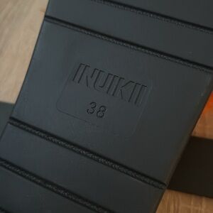 INUIKII black / orange feather hand beaded strap sandals retail $225 size 38
