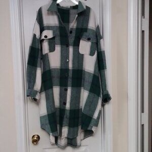 IN'VOLAND Plus Size Flannel Plaid Shacket 22W Green/Beige
