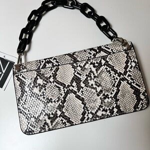 INZI snakeskin pocket shoulder bag. Chunky link strap.