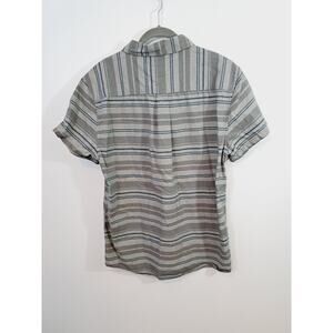IO Men's Gray Stripe Linen Blend Button Up Shirt In Size Large