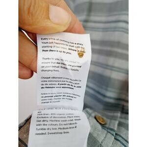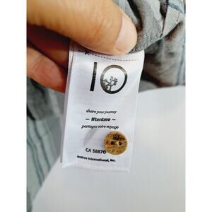 The shirt is available in size large and has a regular fit. The closure is a button-up and the shirt is suitable for both travel and casual occasions. The shirt is not handmade and is not a vintage piece. The IO brand guarantees quality and style. This shirt is in gently used condition measuring 22" from armpit to armpit and 29" from shoulder to hem.