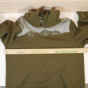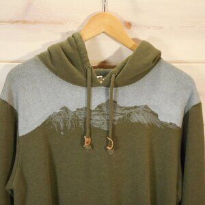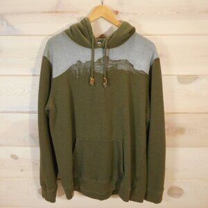 IO Men's size XL Hoodie Organic Cotton Blend Mountain Print Olive Green