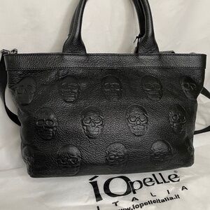 IO PELLE Italia 3D Skull Black Tote Crossbody Bag Italy