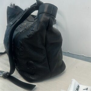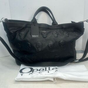 IO PELLE Italian Black Leather Embossed Skull Tote With Detachable Adjustable Shoulder Strap For Crossbody Bag Look stylish & savage with this timeless, durable tote…just gorgeous.