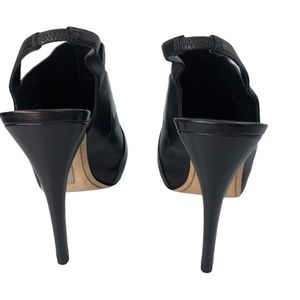 Black Leather Peep Toe "Gloria" Slingback Pumps