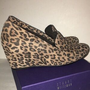 IOB Stuart Weitzman Arise Camel Leopard Suede Wedge Size 8.5 Gently Used Little wear to upper shoe and sole