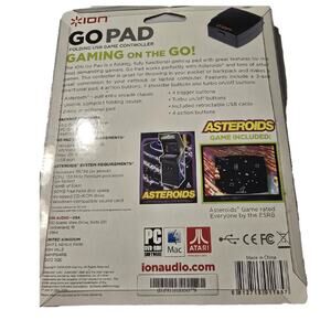 The ION Go Pad is a folding, fully Functional gaming pad with great features for the most demanding gamers. Go Pad works perfectly with Asteroids and tons of games. This controller is great for throwing in your pocket or backpack and makers a great companion to your notebook or laptop computer. Features include a 2-axis directional pad, 4 action buttons, 4 shoulder button sand turbo on/off button. sytem requirements in pictures.