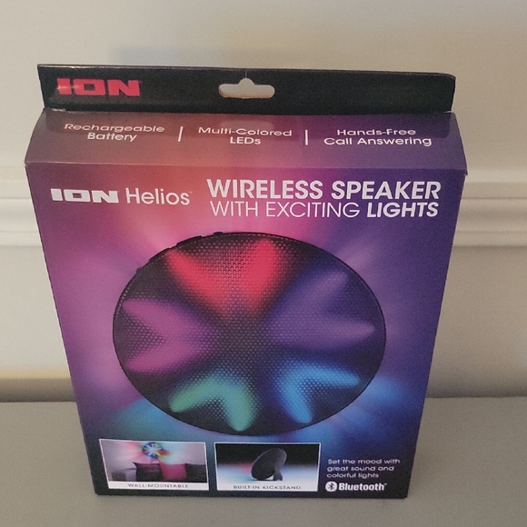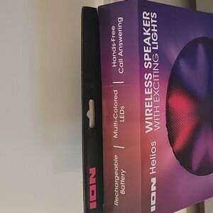 ION Helios wireless speaker with vibrant LED lights. Features Bluetooth connectivity and hands-free call answering. NWT