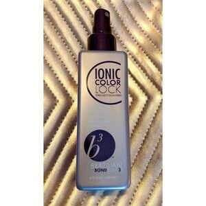 This is Ionic Color Lock b3 Brazilian Bond Builder in the 4.75 fl. oz. size. It’s NWT, but missing the clear plastic cap on top. b3 Color Lock is a protective system that utilizes bond building plus ionic technology to seal the cuticle and help lock in color. Won’t build up or alter color. For use In all shades, fashion colors, highlights, and blonde tones. To use, shake the product thoroughly before each use. Spray 5” away from wet or dry hair. Comb to distribute then style as usual. This is a professional hair product designed to preserve color treated hair. It locks in color by sealing the hair cuticle, preventing color molecules from escaping and keeping your hair vibrant for longer. Helps prevent color washout and protect against UV. Silicone free, so it won’t build up on your hair or weigh it down. It has the scent of sweet Samba.  New product and never used.