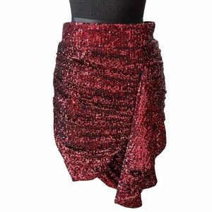 IORANE Red Sequin Ruffle Ruched Mini Skirt NWT