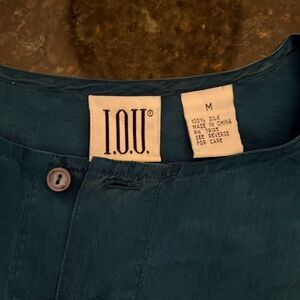I.O.U. SZ M 💯 SILK TEAL TOP *UNISEX - Vintage!