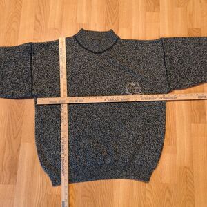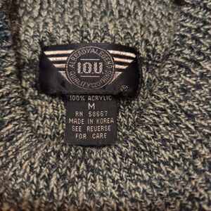 IOU Sweater Mens Medium Small Black White 90s Crewneck Acrylic Knit Vintage