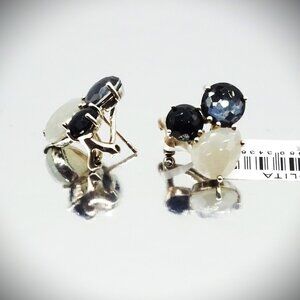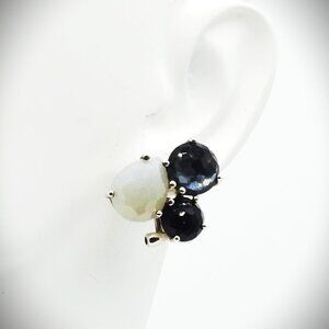Ippolita design Rock Candy Collection sterling silver, faceted onyx, hematite doublet, and chalcedony stone cluster earrings are approx. 7/8" wide, 0.5" long with omega fastening.