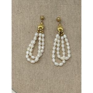 IPS 14K Gold Beads and Pearls Dangling Earrings