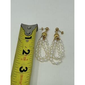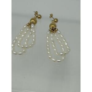 Marked IPS 14K Gold Beads and Pearls Dangling Earrings