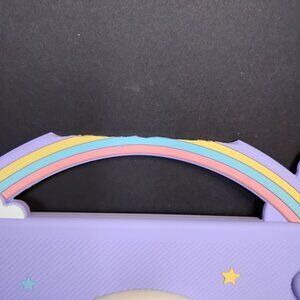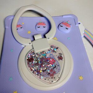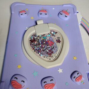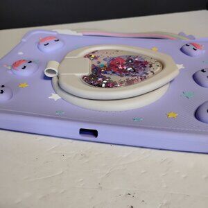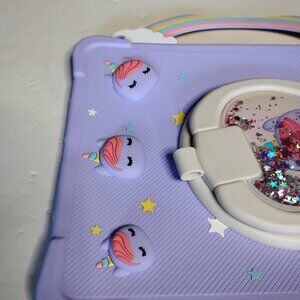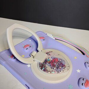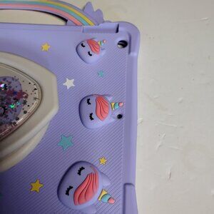 IPad 10.2 Silicone Cover Purple with Unicorns. The top silicone handle was ripped, as seen in pictures, used, not new. For IPad 10.2.