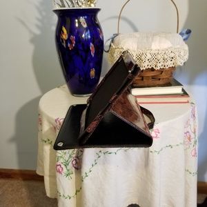 Very nice IPad holder is 9 3/4 X 7 3/4. It is gently used and from smoke free home.