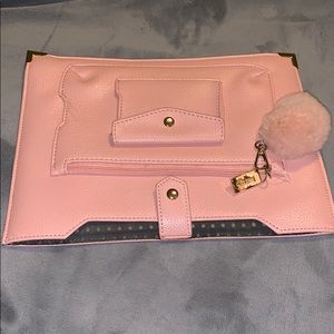 Kensie IPad case. Main pocket for iPad, smaller zipper area, and small snap comportment. 10.75 inches long and 8 1/8 inches wide. Never used. Some damage on item as shown in pictures .