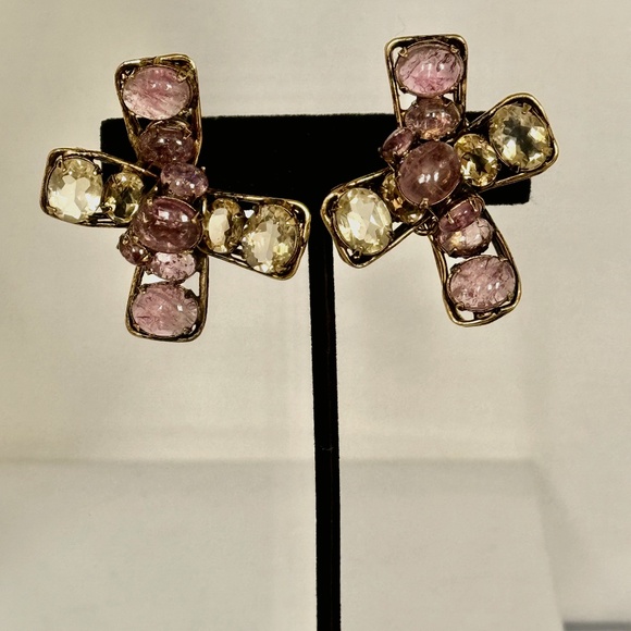 IRADJ MOINI NYC Designer yellow Citrine and pink tourmaline VTG EARRINGS