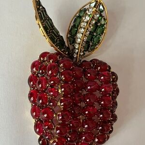 IRADJ MOINI Vintage Large Apple Fruit Brooch Pin Costume Designer Jewelry