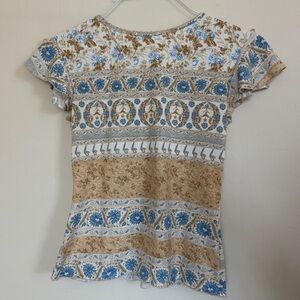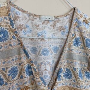 IRE Y2K Top Multicolor Neutral Floral Babydoll Wrap Top