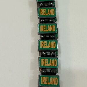 Stylish bracelet featuring 'Ireland' text with green accents. Perfect for adding a touch of Irish charm. Carefully packed and ready to send your way.