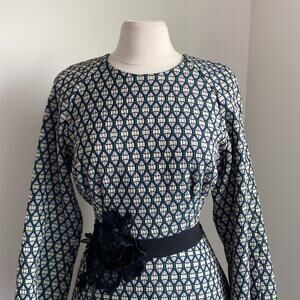IREN KLAIRIE Fit & Flare Dress Womens Sz 12 Geometric Print Floral Tie Waist