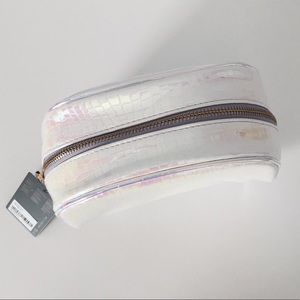 Beautiful iridescent bag with black interior lining and gold-tone zipper. Has subtle animal (alligator/crocodile?) pattern print throughout exterior. Purchased from Forever 21. This pouch case is perfect for travel and everyday use to stylishly carry your makeup, cosmetics, pens, pencils, small camera, etc. Condition: NWT - Sold as is. Final sale.