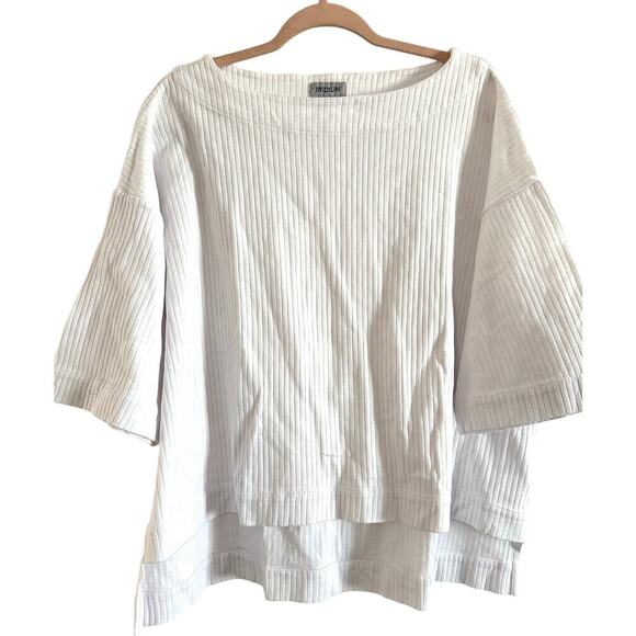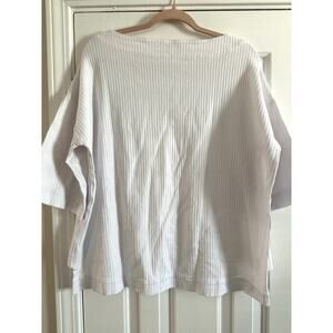 IRIDIUM Magnolia Ribbed White Oversized Hi-Lo Hem Top - Sz Small