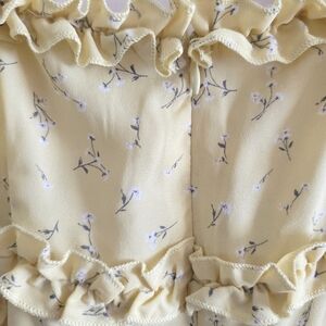 The perfect floral dress for the garden! The flowy skirt and add frill details are perfect for the warm weather! Of note: this shade of yellow is subtle and not a super bright shade.