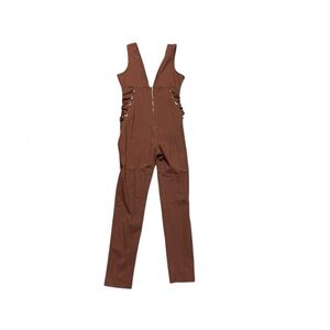 This chic jumpsuit from Iris features a sophisticated brown and black color scheme, perfect for making a statement. The high-waisted design offers a flattering fit, while the unique detailing around the waist adds a touch of elegance. Ideal for both casual and formal occasions, this jumpsuit is a versatile addition to any wardrobe.